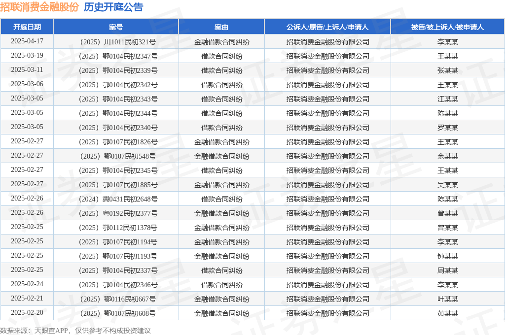 本站消息,根据天眼查APP显示,近日公布了一则招联消费金融股份有限公司作为原告/上诉人的开庭公告,详细内容如下: